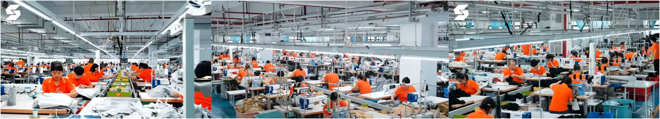 Sanbai Apparel accepts large, medium and small wholesale orders, and accepts processing of supplied materials, samples, drawings, OEM, ODM. Any customized products are feasible. Our monthly production capacity is about 200,000-300,000, with 120-150 basic styles of proofing per month, and maintains 350-380 new designs per month.